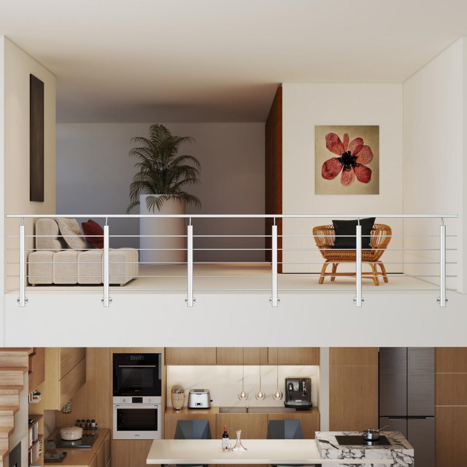 Barandilla escalera de acero inoxidable 304 con 5 barras transversales para interior y exterior
